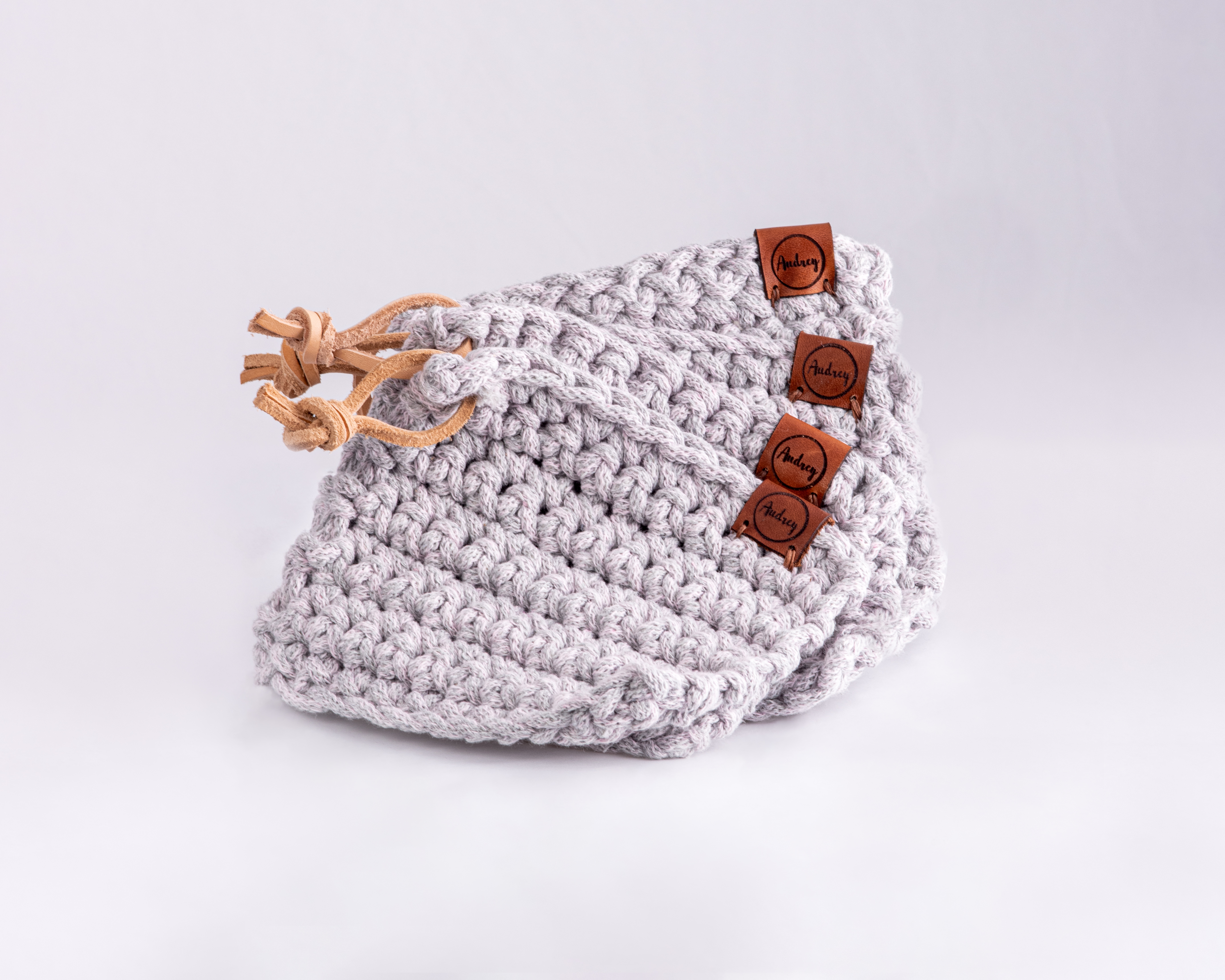 Háčkované prostírání s podtácky z bavlněných šňůr.