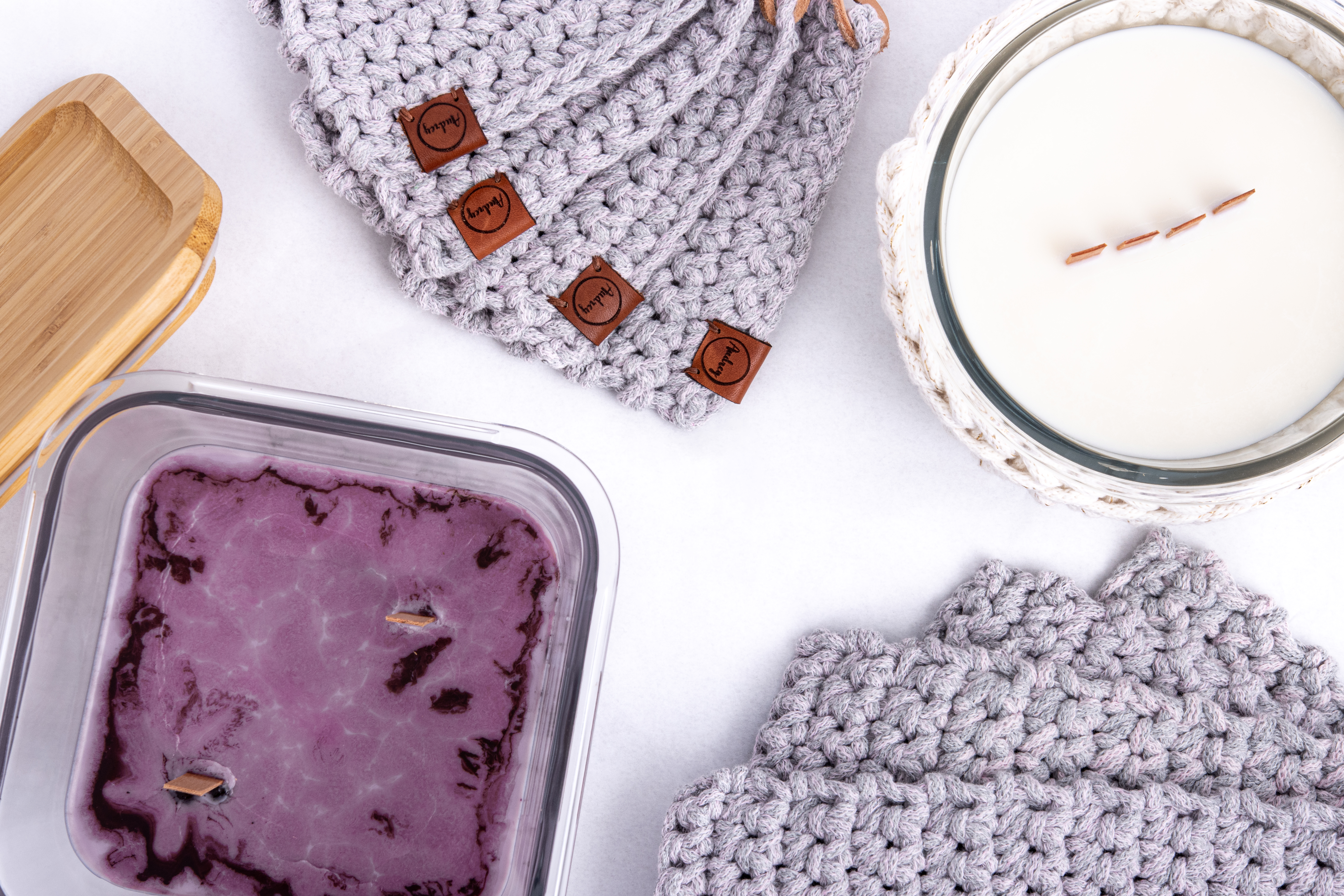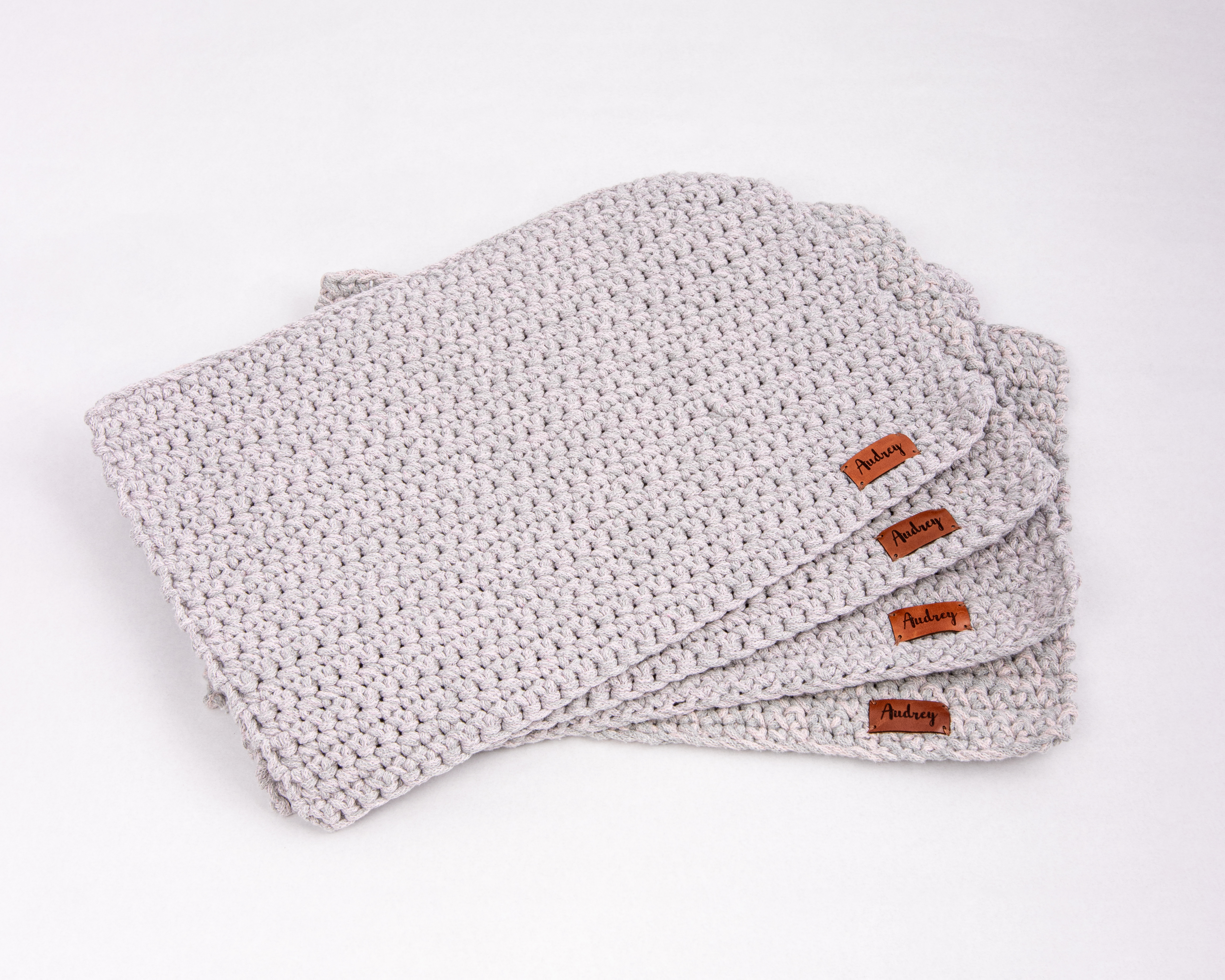 Háčkované prostírání s podtácky z bavlněných šňůr.